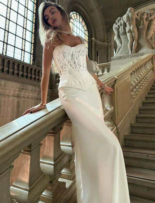 Step into elegance with our Lace Corset Top & Satin Maxi Skirt Two Piece Set — a stunning blend of romance and sophistication. The lace corset top features intricate detailing, structured boning, and a flattering sweetheart neckline that accentuates your curves. Paired with a flowing satin maxi skirt, this set is perfect for formal events, romantic evenings, or special celebrations where you want to feel graceful and confident.