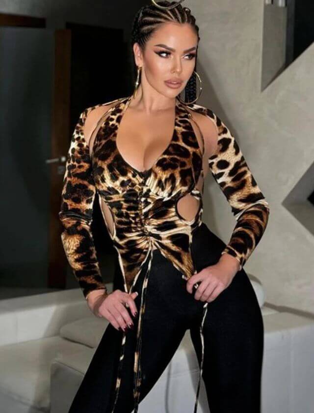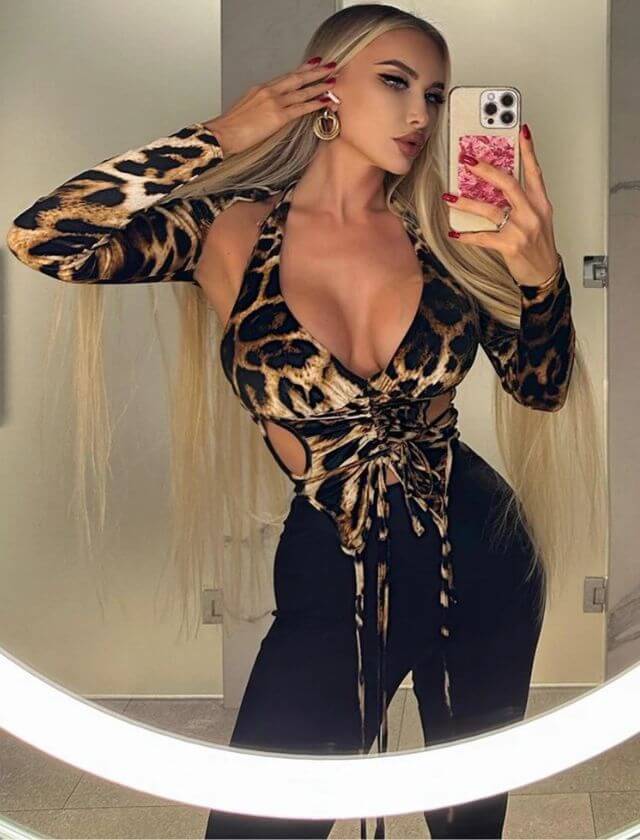 Whether you’re stepping out for a night on the town or rocking the dance floor at a party, this Lace Leopard Print Hollow Out Halter Top is sure to be your go-to piece for adding a touch of wild glamour to your wardrobe.