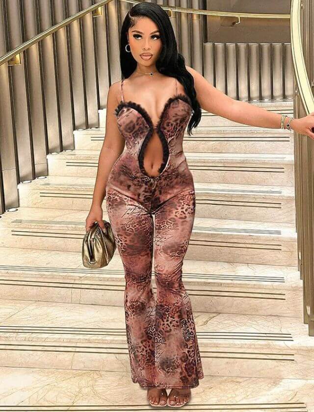 Introducing the Leopard Print Cut Out Bodycon Jumpsuit – a fierce and fashionable statement piece that will have you turning heads wherever you go. This stunning jumpsuit is the perfect addition to your summer wardrobe, whether you’re heading to a party or simply want to add a touch of wild style to your casual collection.
