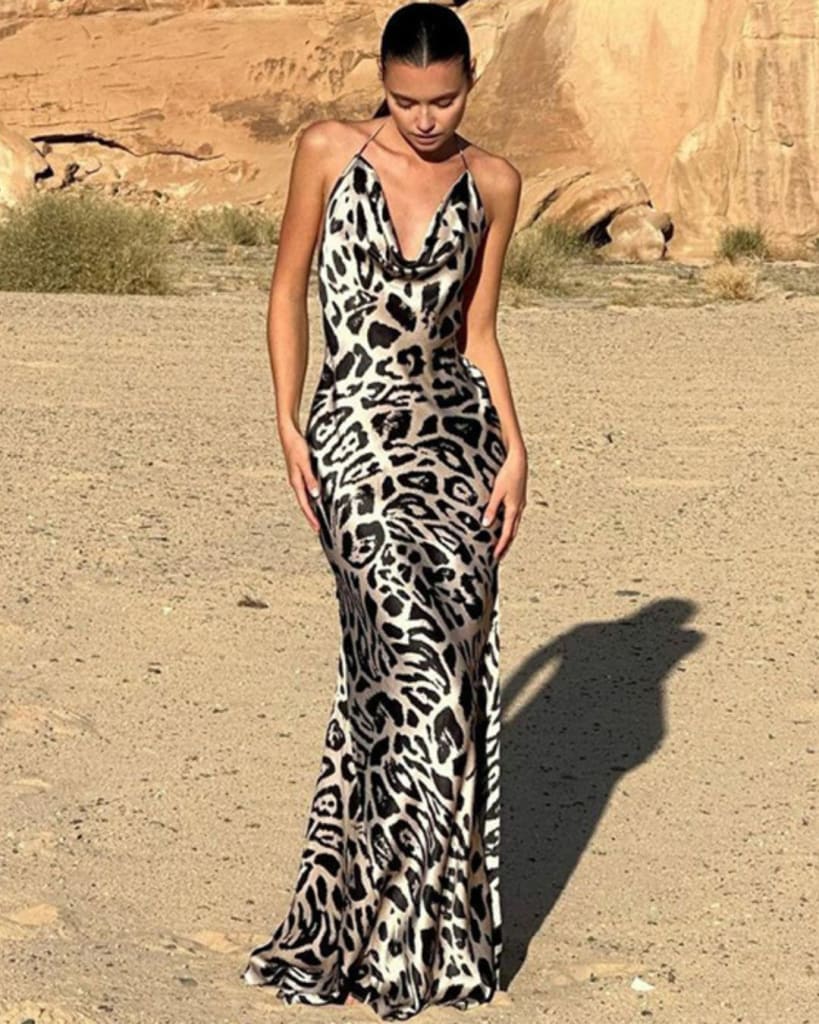 Be the first to review “Leopard Print Halter Slim Summer Dress”