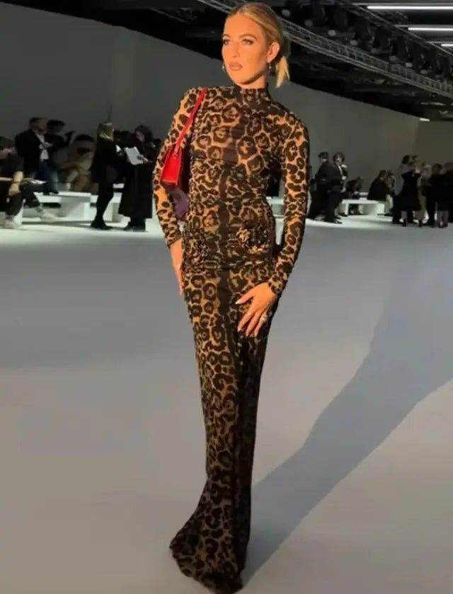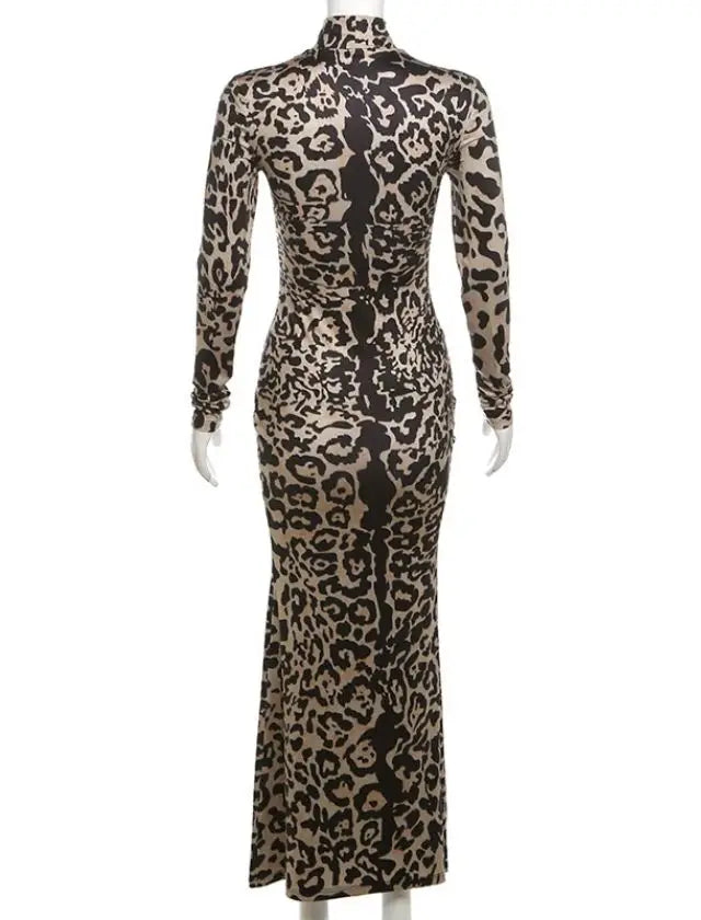 Unleash your wild side in our Leopard Print Turtleneck Long Sleeve Maxi Dress. This fierce dress exudes confident style with its fierce leopard print and sleek turtleneck design. Keep heads turning at your next event with this bold and stylish dress that is sure to make a statement.