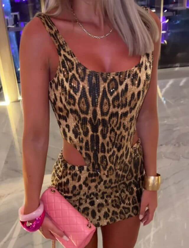Get ready to turn heads and make a statement with this eye-catching two-piece set. The leopard sequin design adds a touch of fun and flair to your look, perfect for those adventurous fashionistas unafraid to experiment with their style.