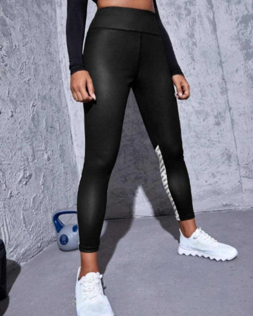 Workout in style with our tomorrow letter graphic two tone sport legging.