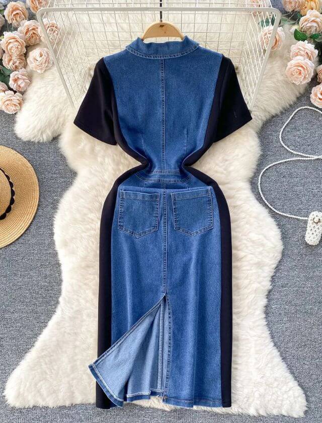 Be the first to review “Long Casual Denim Patchwork Jeans Dress”