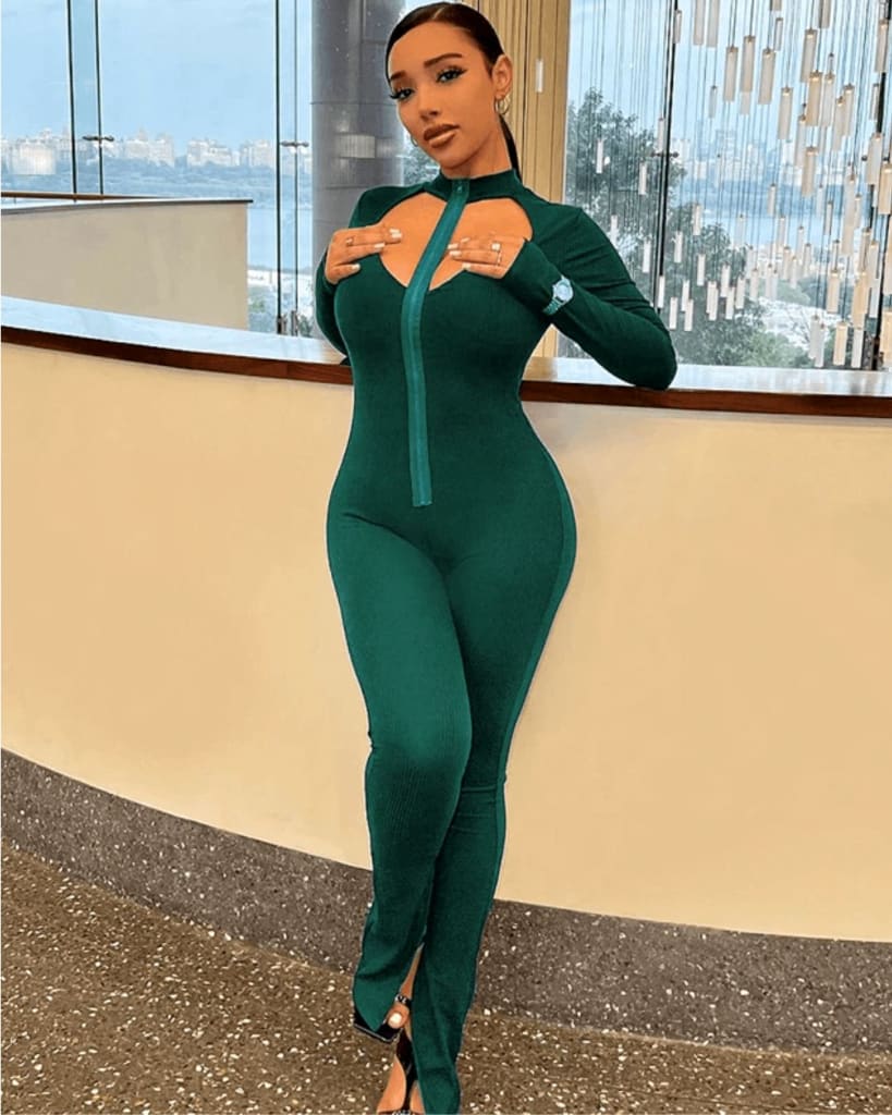 Be the trendsetter with this Long Sleeve Hollow Out Zipper Slit Jumpsuit. This daring and stylish jumpsuit features long sleeves, a stilted neckline, zipper detailing, and moderate hollow out. Step out with confidence and take your bold fashion choices to the next level!