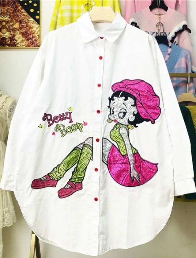 Constructed with a long sleeve design, this shirt is perfect for transitioning seamlessly from season to season. Whether you’re rocking it with shorts in the summer or layering it with a cozy sweater in the winter, the Long Sleeve Loose Cartoon Embroidery Shirt is a versatile addition to your closet.