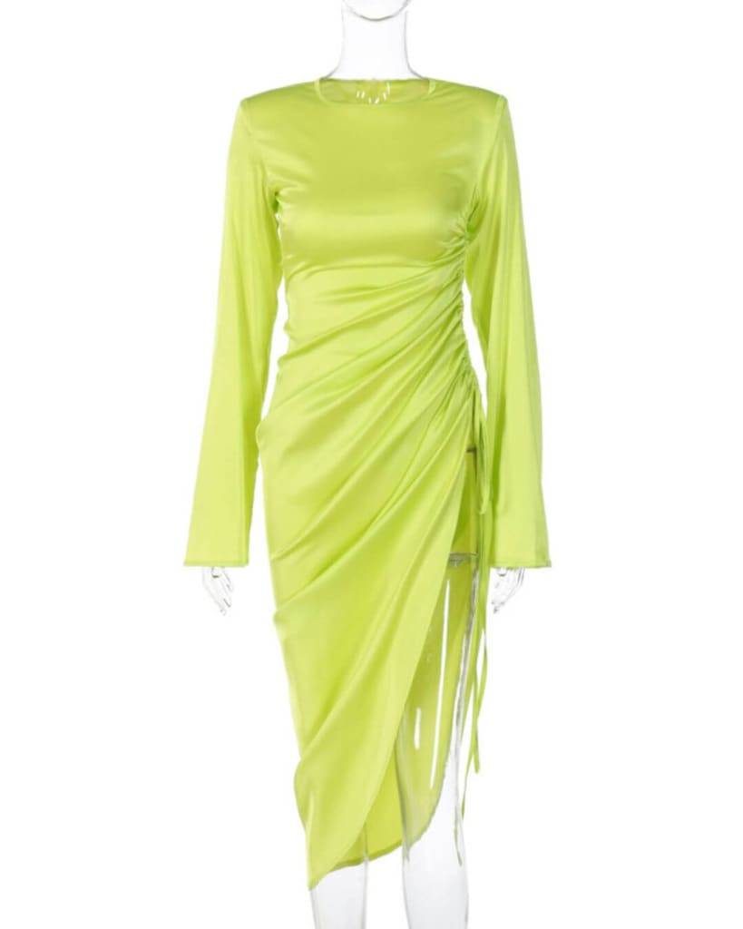Flaunt this long sleeve solid o-neck side split stylish and trendy midi dress for upcoming events and look effortlessly stylish wherever you go.