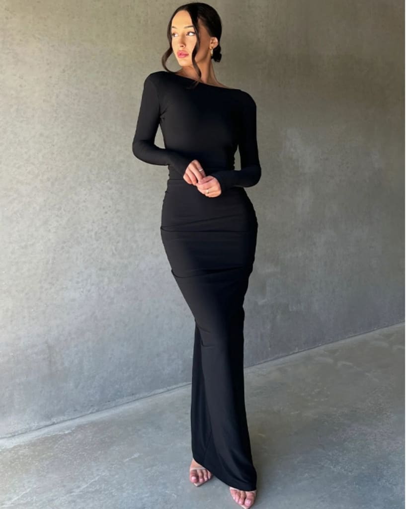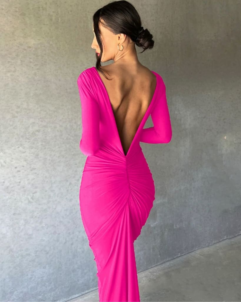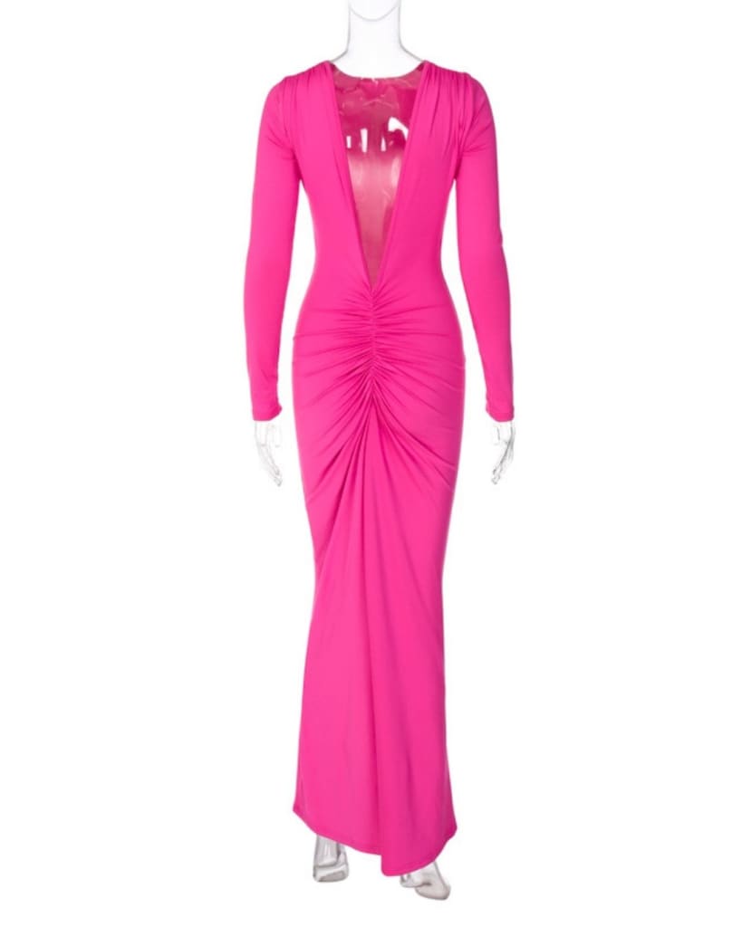 This Long Sleeve Stretch Deep V Ruched Elegant Maxi Dress is perfect for a night out. Made of 95% Polyester and 5% Spandex, it features a deep V neckline with rushing for an elegant look. Its long sleeves provide extra warmth and make it perfect for any occasion.