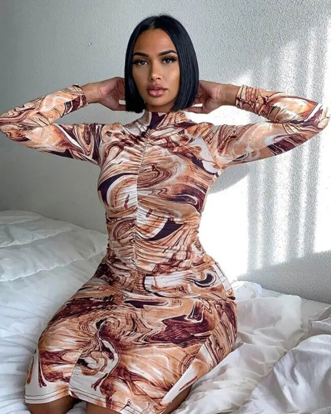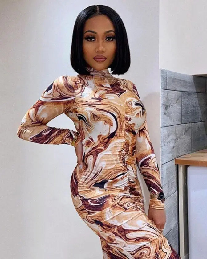 A figure-accentuating and endlessly-versatile dress design. Stand out from the crowd and get event-ready in our exquisite stretchy tie dye turtleneck midi women party dress that will highlight your curves. Perfect to wear during the day or in the evening!