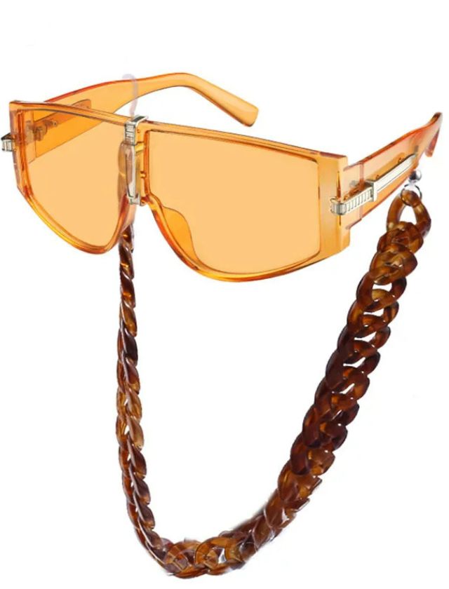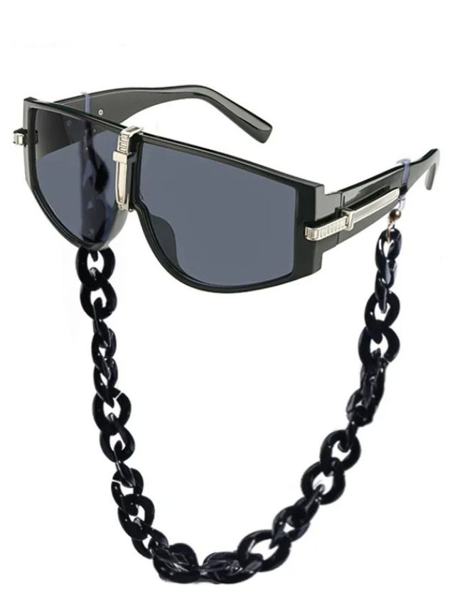 Whether you’re strutting down the street or lounging at a rooftop brunch, these shades bring undeniable attitude and style. The decorative chain adds an edgy flair while ensuring your sunglasses stay secure and close at hand. A must-have accessory for any trendsetter looking to stand out.