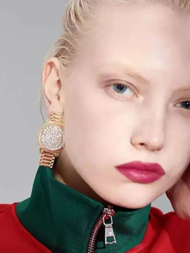 Add an effortlessly chic vibe to your look this season with our luxury crystal watch stud gold earrings.