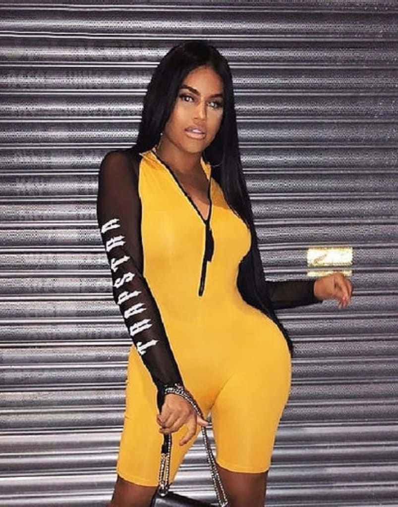 Step out in style with our latest yellow long sleeve short bodycon jumpsuit. Perfect for all occasions.