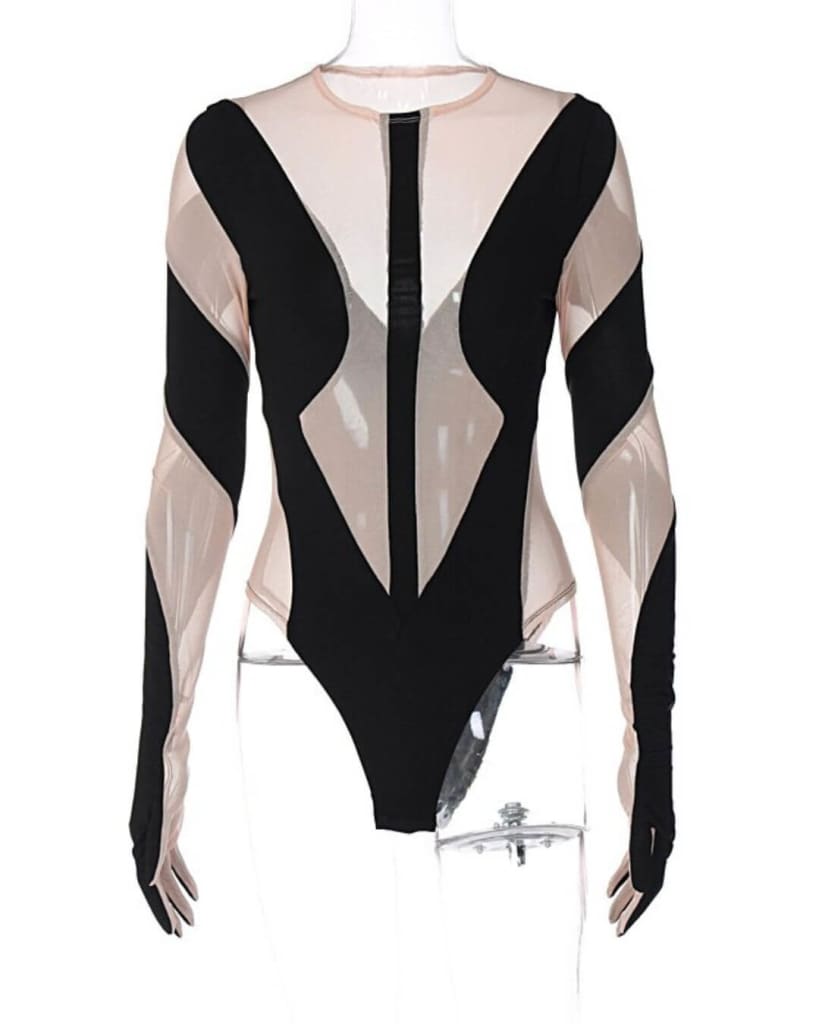 Make a style statement with ultra-chic stretchy mesh patchwork long sleeve bodysuits. Perfect to wear during the day or in the evening. These versatile pieces will hug your figure, bringing out the best in your body shape. Showcase the mesh patchwork detailing and make a fashion statement that’s sure to turn heads.