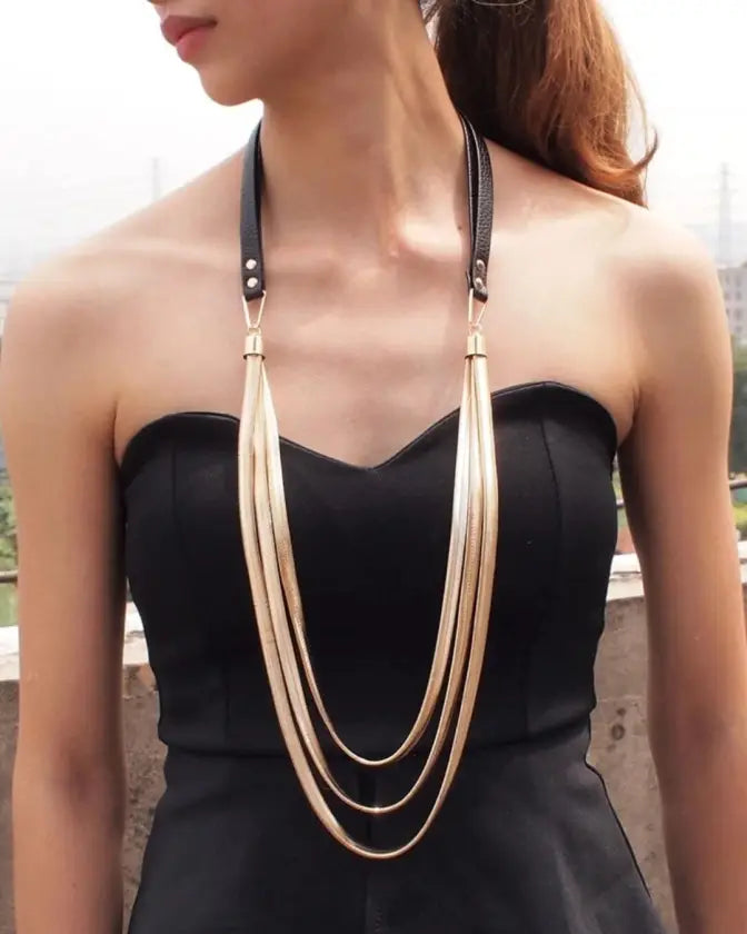 Expand your jewelry rotation with our edit of multi layers leather snake chain necklace. A unique piece that you should add to your jewelry box.