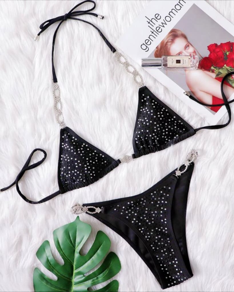Take a daring plunge in this New Black Bandage Rhinestone Two Piece Swimsuit! Harness sparkles and style in one daring package – perfect for making a splash at the pool or beach. Dive in now!