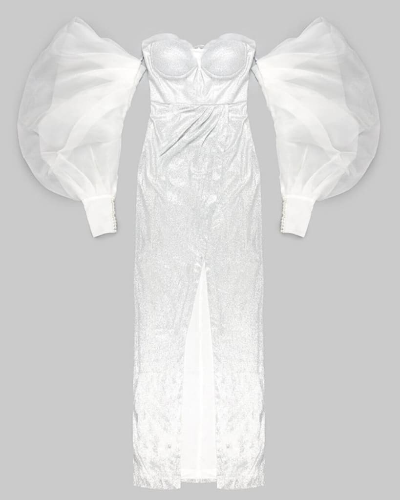 This timeless piece of evening elegance is sure to make you shine like a star. Crafted with an exquisitely designed puff sleeve, V-neck and high-quality materials, this New Design Evening Party Puff Sleeve Maxi Dress is sure to make heads turn and become a luxurious must-have for evening parties.