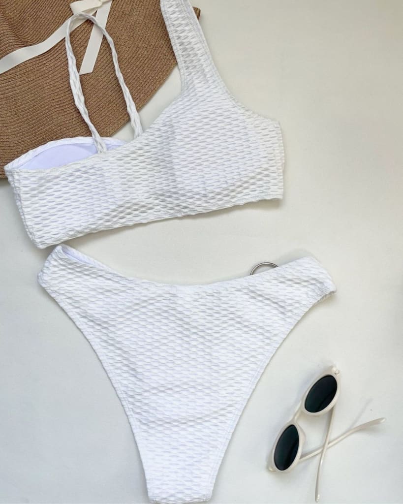 Dive into adventure with this New Fashion White Split High Waist Irregular Swimsuit! Its stylish split design and high waist make it perfect for taking risks and pushing your limits. Take the plunge and make a statement in this fashionable swimsuit.