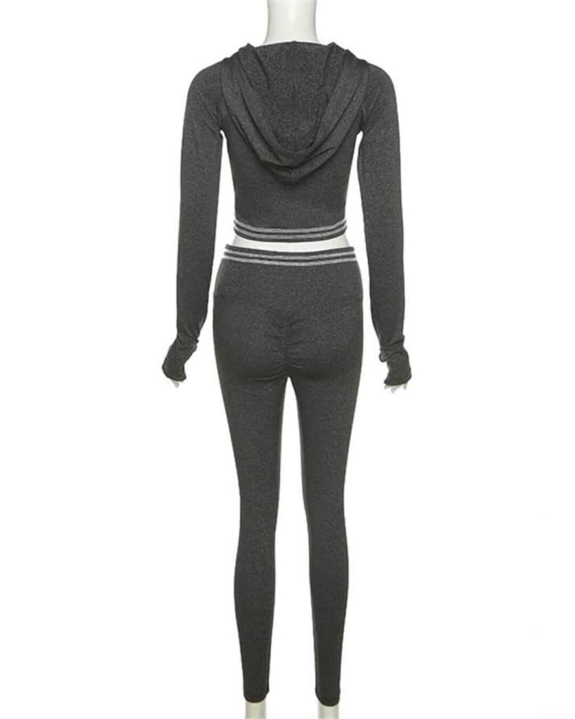 Our new hoodie top & legging push up long sleeve grey tracksuit has all you need to get exercising in comfort and style.
