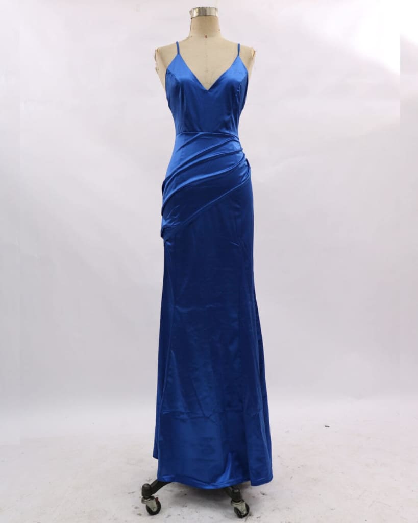 Unleash your wild style with the New Satin Backless Maxi Evening Dress. Its v-neckline, spaghetti straps, and backless construction capture attention in any wedding or occasion. Take the plunge and let your look do the talking!