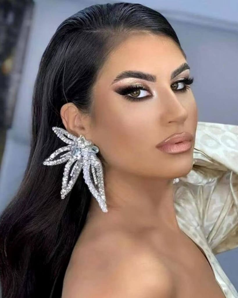 Create a killer look head to toe with our new shiny rhinestone flower shape earrings.