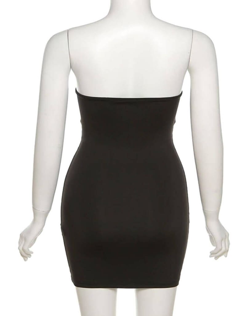 Available in a striking black color, this bodycon mini dress features a backless, strapless, and sleeveless design, making it perfect for those warm summer nights or winter parties. The V-neck adds a touch of elegance, while the stretchy fabric ensures a comfortable and flattering fit.