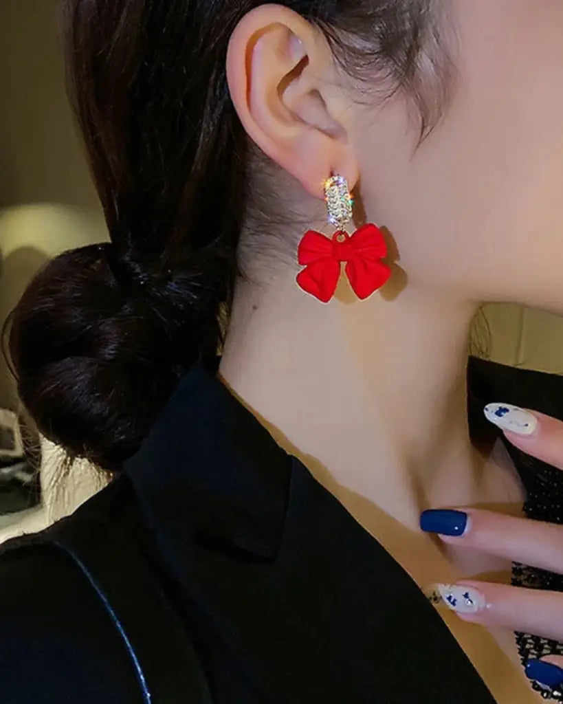 Introducing our New Stylish Crystal Bow Knot Dangle Earrings! These earrings will add a touch of elegance and sparkle to any outfit. The beautiful crystal bow design will catch the light and draw attention. Express your unique style and add some glam to your look with these stunning earrings!