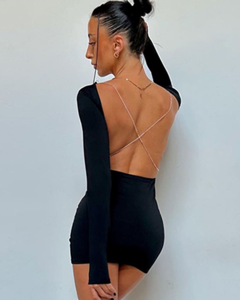 Make a bold statement in this unique O-Neck Chain Mini Dress! This stylish piece features a backless design and long sleeve construction for a trendy and timeless look. Crafted with a high-quality blend of materials for superior comfort and durability, this dress is the perfect addition to your wardrobe. Will you make a statement?