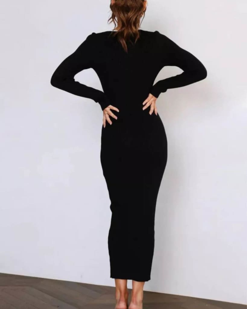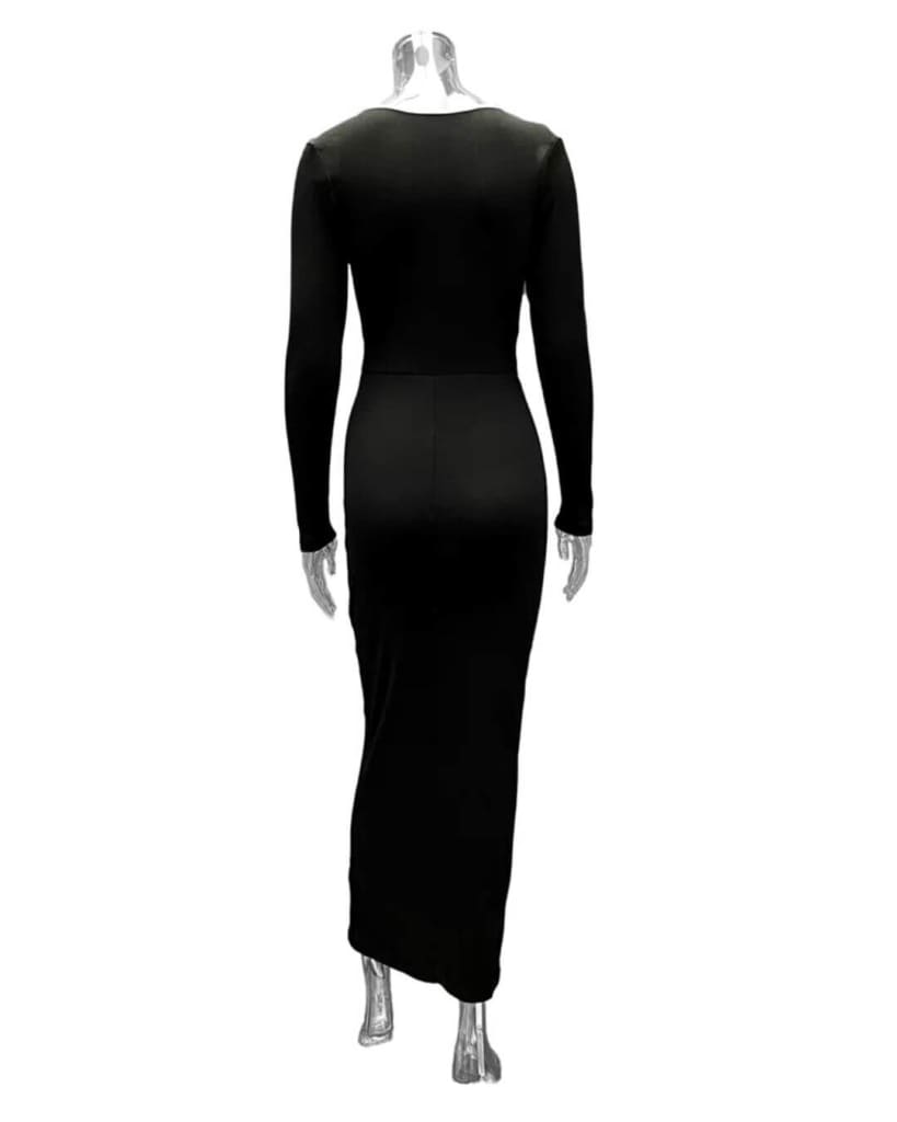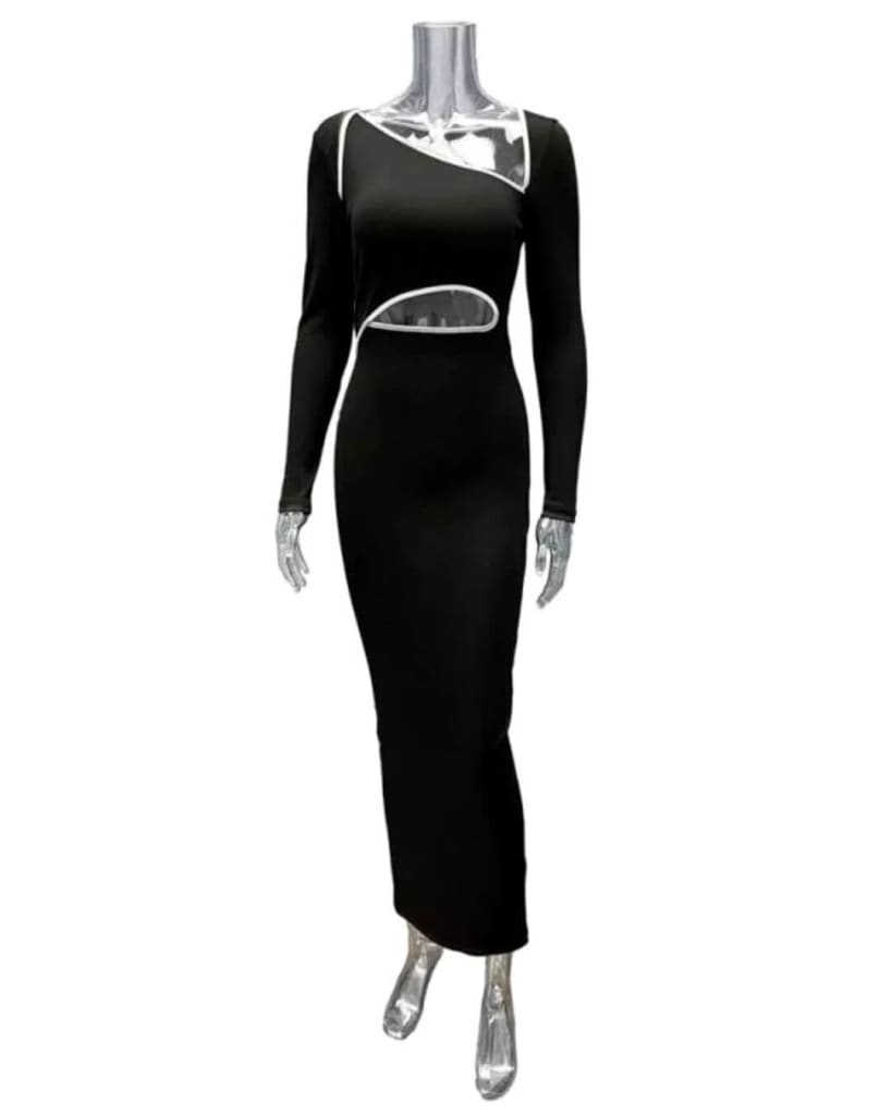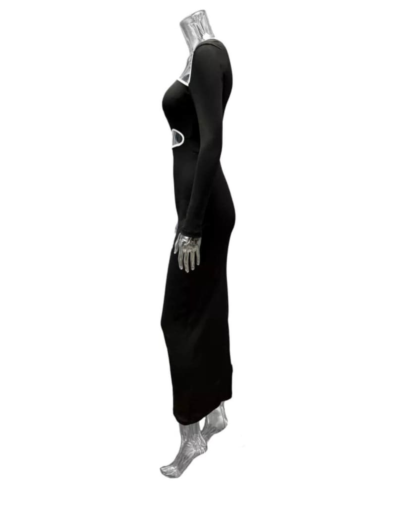 Dress to impress with our latest oblique neckline hollow out black slim fit midi black dress. Perfect to wear to your next event.