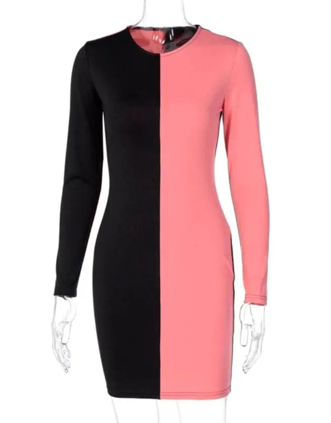 Make a wow-worthy statement in our elegant patchwork long sleeve mini dress. Perfect to wear during the day or in the evening.