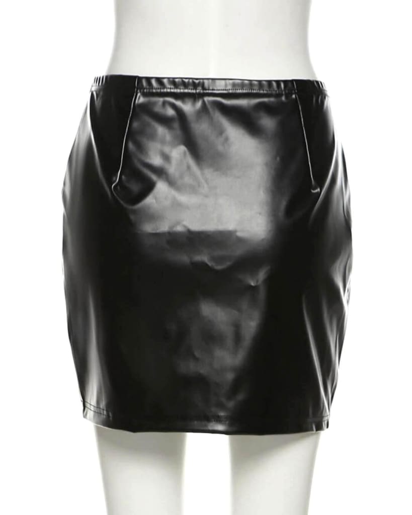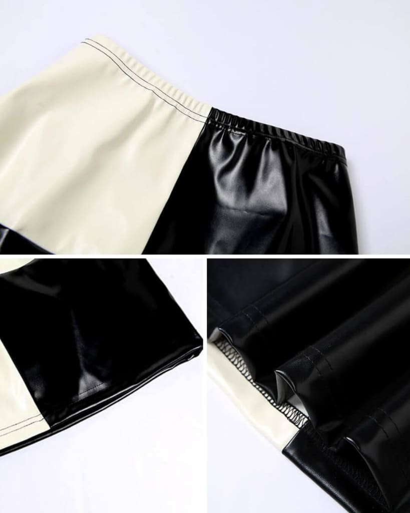 Make a style statement with ultra-chic leather patchwork high waist PU mini skirt. Perfect to wear during the day or in the evening.