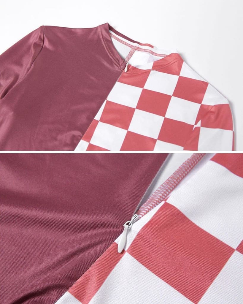 Be the first to review “Patchwork Long Sleeve Plaid Jumpsuit”