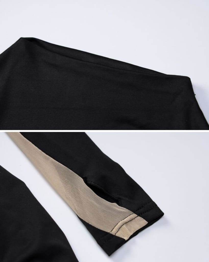 Be the first to review “Patchwork Mesh Long Sleeve Lace Up Club Dress”