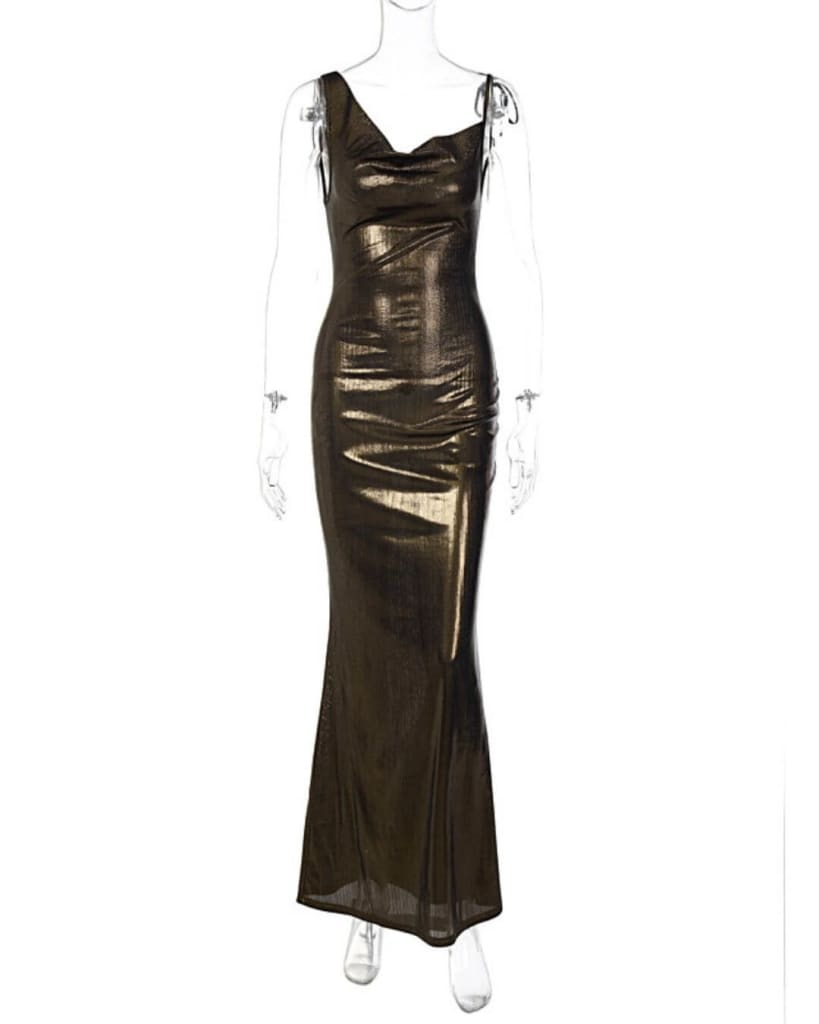 Bring on the standout style with our PU faux leather backless elegant evening wedding maxi dress. Perfect to wear to your next occasion.