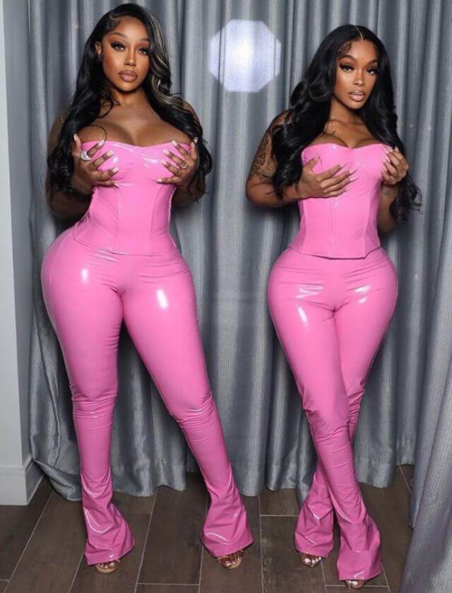 Our PU Shiny Leather Pink Crop + Pant Two Piece Set is crafted with high-quality PU leather that not only looks amazing but feels comfortable and sleek against your skin. The vibrant pink color adds a pop of fun and flirty energy to your look, making it the perfect outfit to stand out in any crowd. The bodycon fit and stretchy material hug your curves in all the right places, accentuating your figure and giving you that extra boost of confidence.
