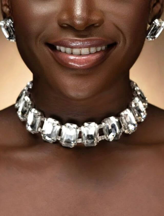Elevate your outfit and your confidence with this jewelry set that exudes style, flair, and a whole lot of personality. So go ahead, treat yourself to this irresistible Rhinestone Choker + Earrings Jewelry Set, and embrace the spotlight.