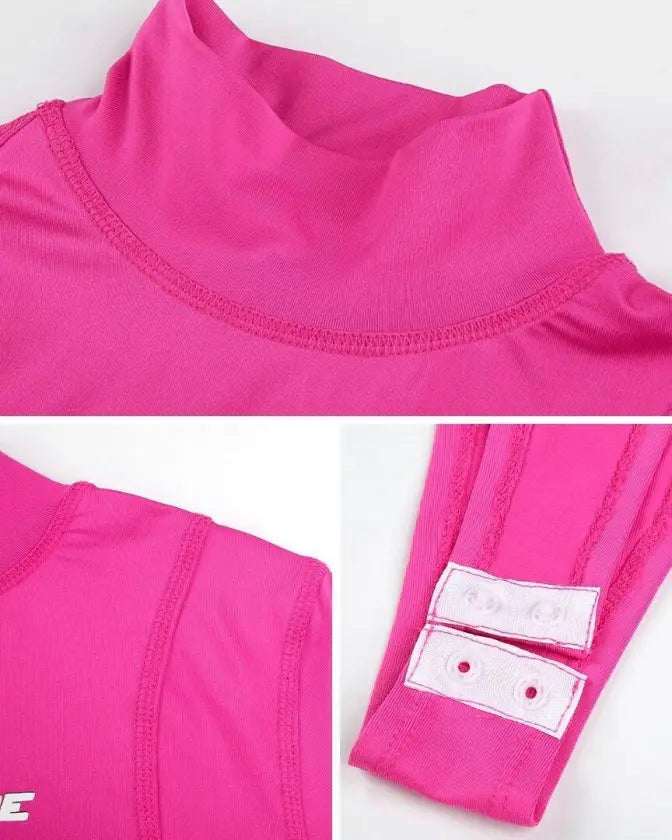 Make a style statement with ultra-chic stretchy pink long sleeve turtleneck bodysuit. Perfect to wear during the day or in the evening.
