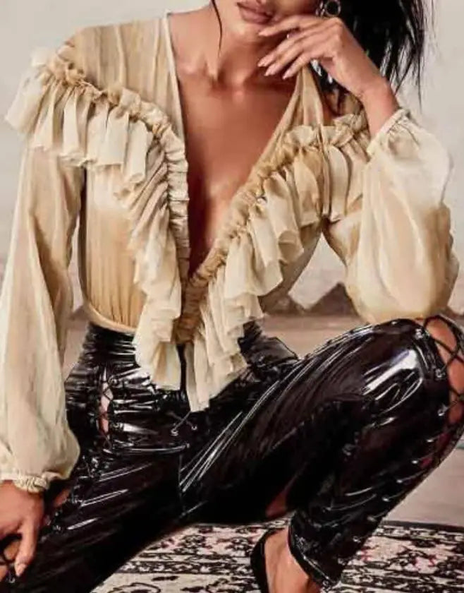 When it comes to trend-led bodysuit, STYLORD is where it’s at. Get this on-trend ruffle chiffon mesh long sleeve bodysuit for an amazing look.