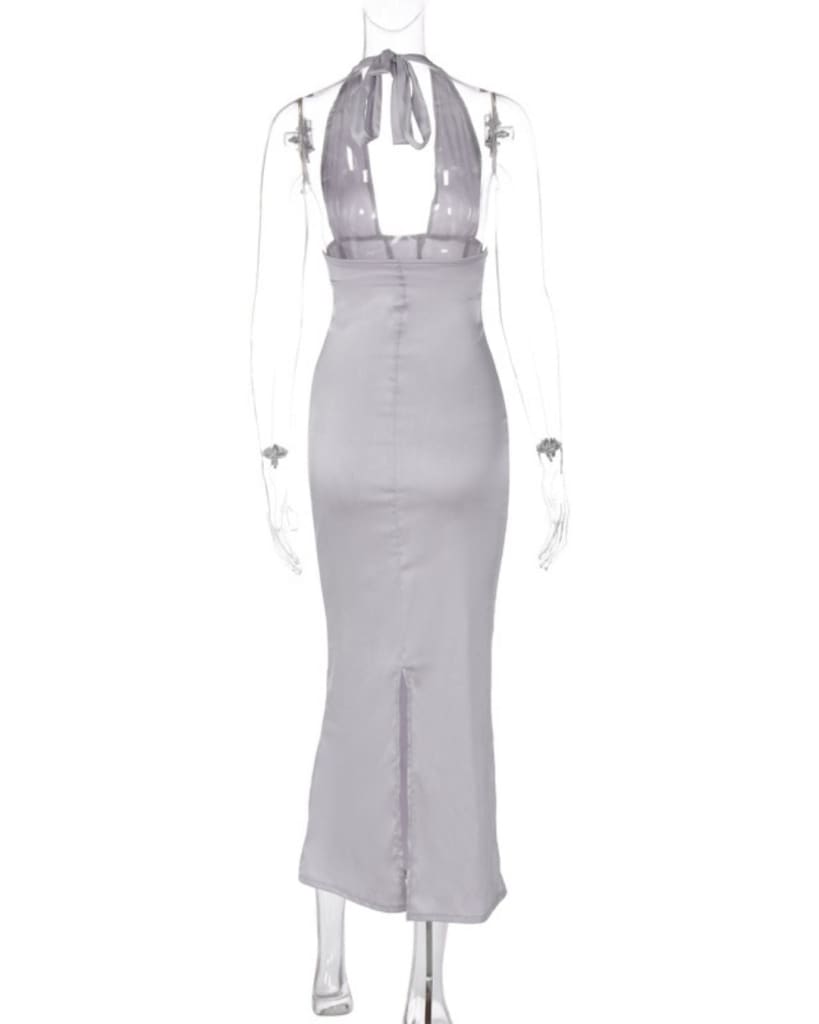 Turn heads in this stunning Satin Halter Hollow Out Deep V Corset Elegant Dress. Made from a lightweight satin blend, this dress features a flattering corset lace up back, stylish halter neck, and deep V neckline that elegantly shows off your decolletage. Perfect for special occasions or nights out.