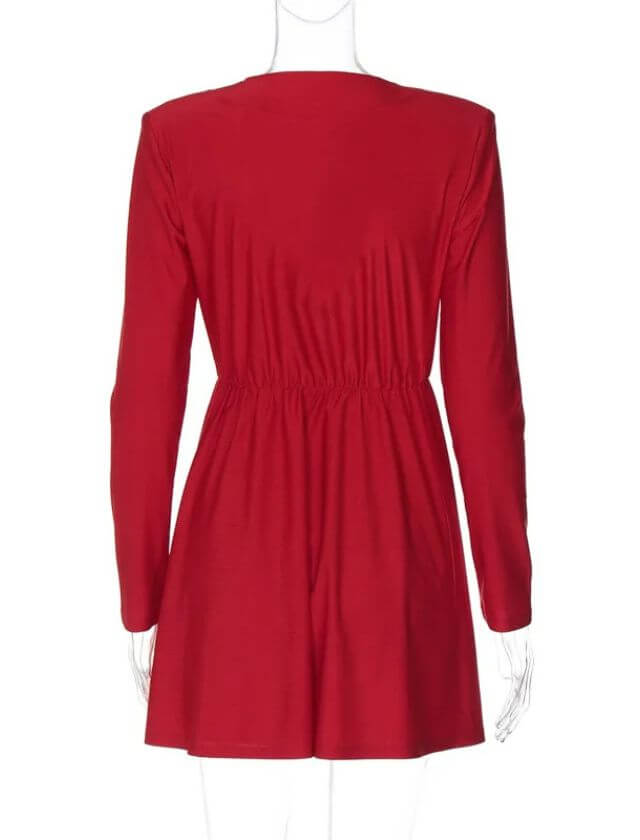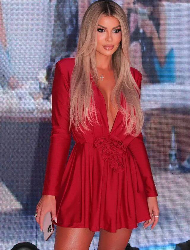 With its deep V neckline and long sleeves, this dress strikes the perfect balance between sexy and elegant. The 3D floral details add a touch of whimsy and playfulness, making this dress a true showstopper. Available in multiple colors, including sultry black, vibrant red, there’s a shade to suit every mood and occasion.