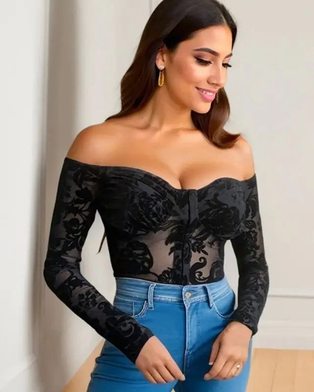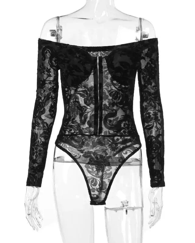 Transform into a sultry goddess with our Sexy Slash Neck Low Cut Mesh Embroidery Bodysuit! Designed to accentuate your feminine curves, the mesh detailing and embroidery add a touch of elegance. Boost your confidence and ignite passion with this must-have piece for any occasion!
