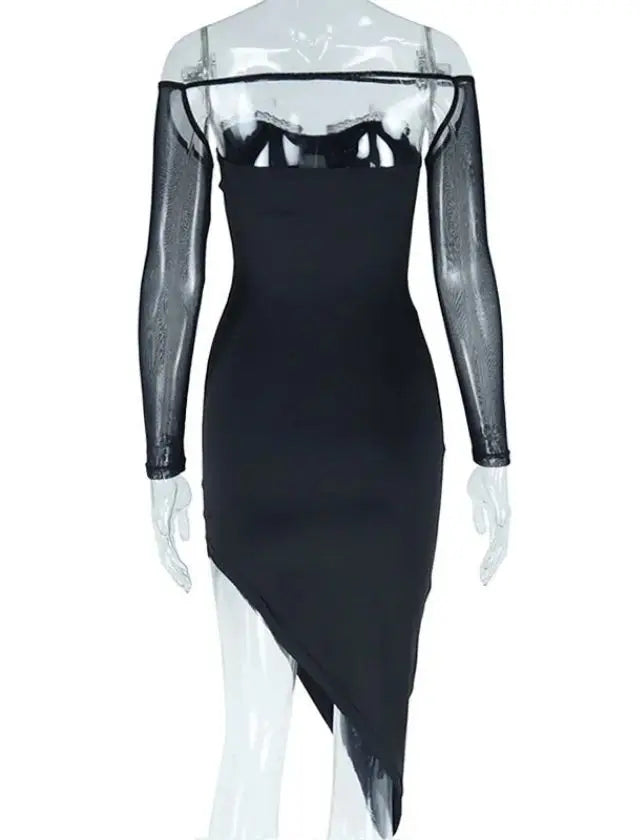 Indulge in luxurious style with our Sexy Slash Neck Mesh Patchwork Midi Dress. The sultry slash neck and mesh patchwork design create a sensual and alluring look. Perfect for a night out, this dress will make you feel confident and glamorous. Elevate your wardrobe with this must-have piece.
