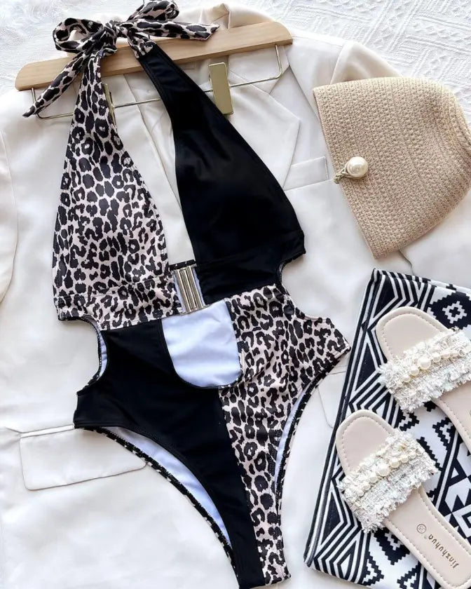 Get ready to turn heads this summer with the Sexy Summer Leopard Print Halter One Piece Swimsuit from STYLORD Boutique! With its fierce leopard print and eye-catching design, this swimsuit is sure to make you the queen of the beach.