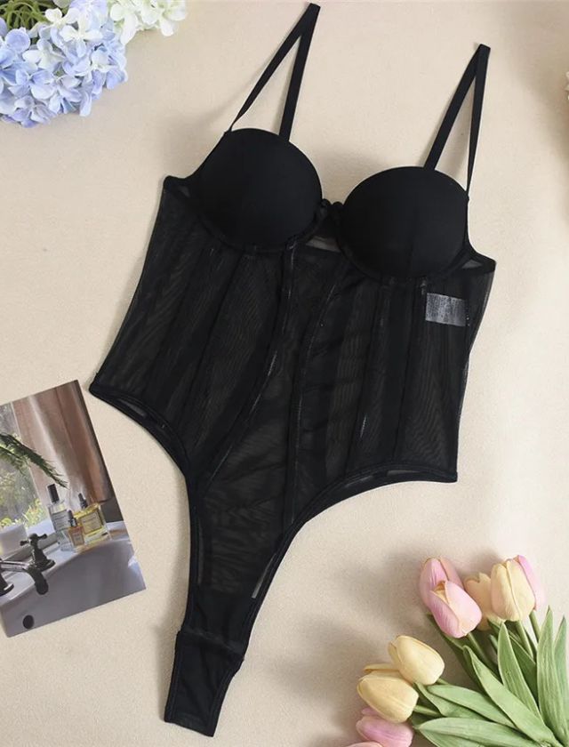 Elevate your look with our Sexy V-Neck Mesh Spaghetti Straps Bodysuit, designed to blend allure with sophistication. Featuring a sheer mesh design, deep V-neckline, and delicate spaghetti straps, this piece enhances your silhouette while adding a touch of daring elegance.