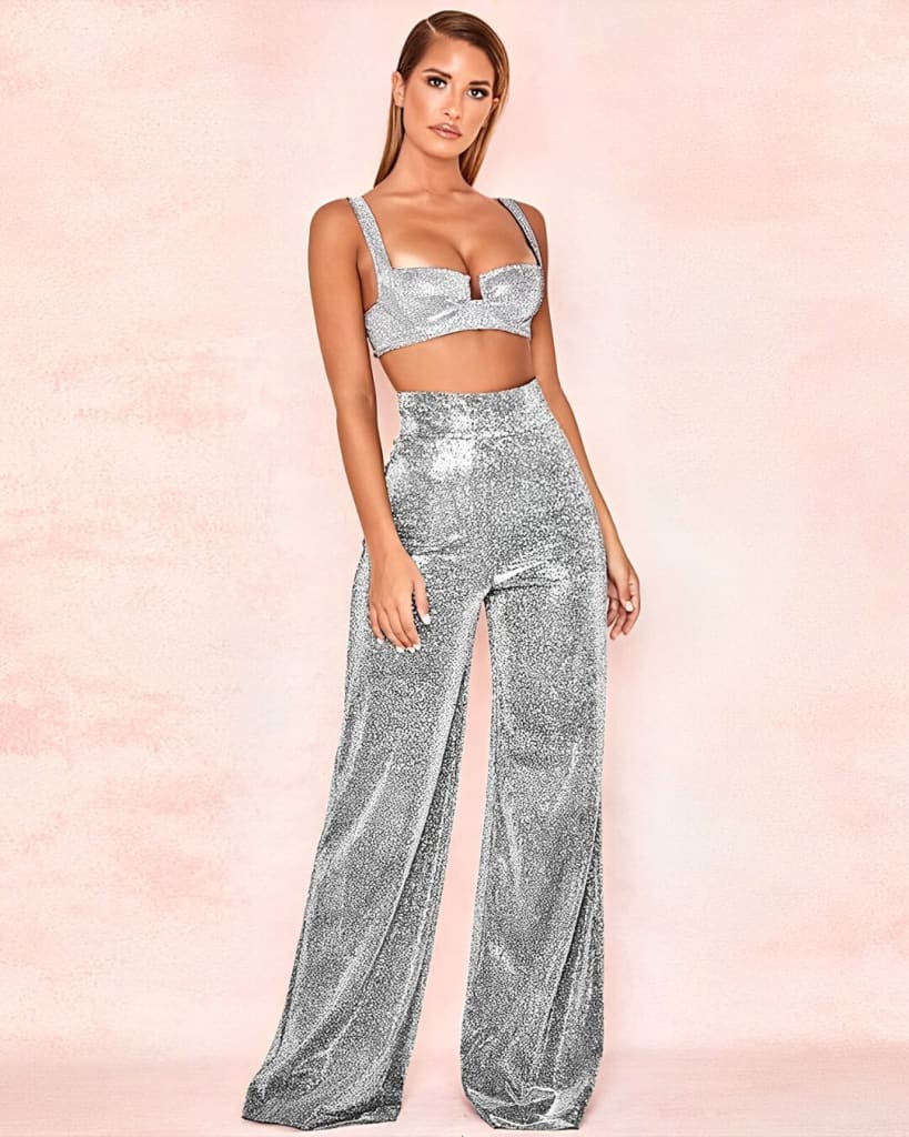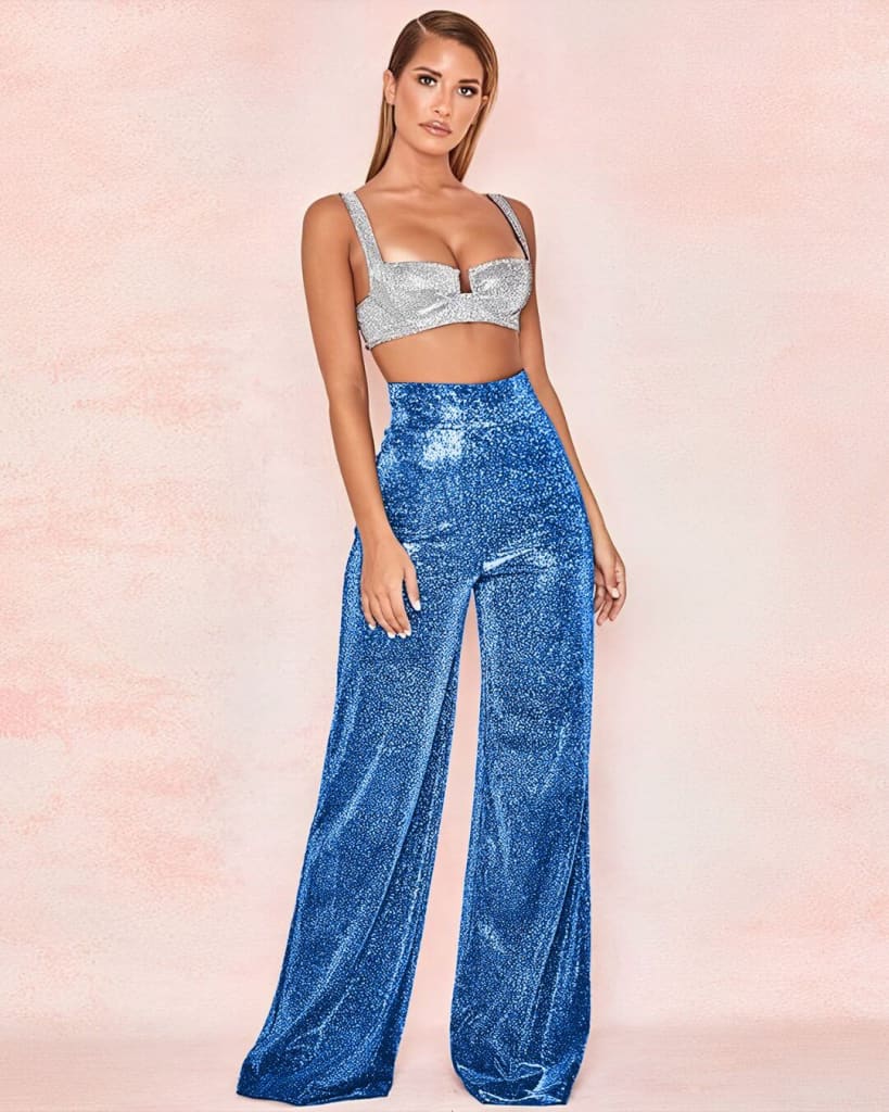 Look effortlessly chic and on-trend with the Shiny Elegant Flare Legs Glitter Pant. Expertly crafted with glitter accents and a flared leg cut, these pants are ideal for any special occasion or event. Perfect for both summer and winter, it’s the perfect way to add a touch of sparkle to any outfit.