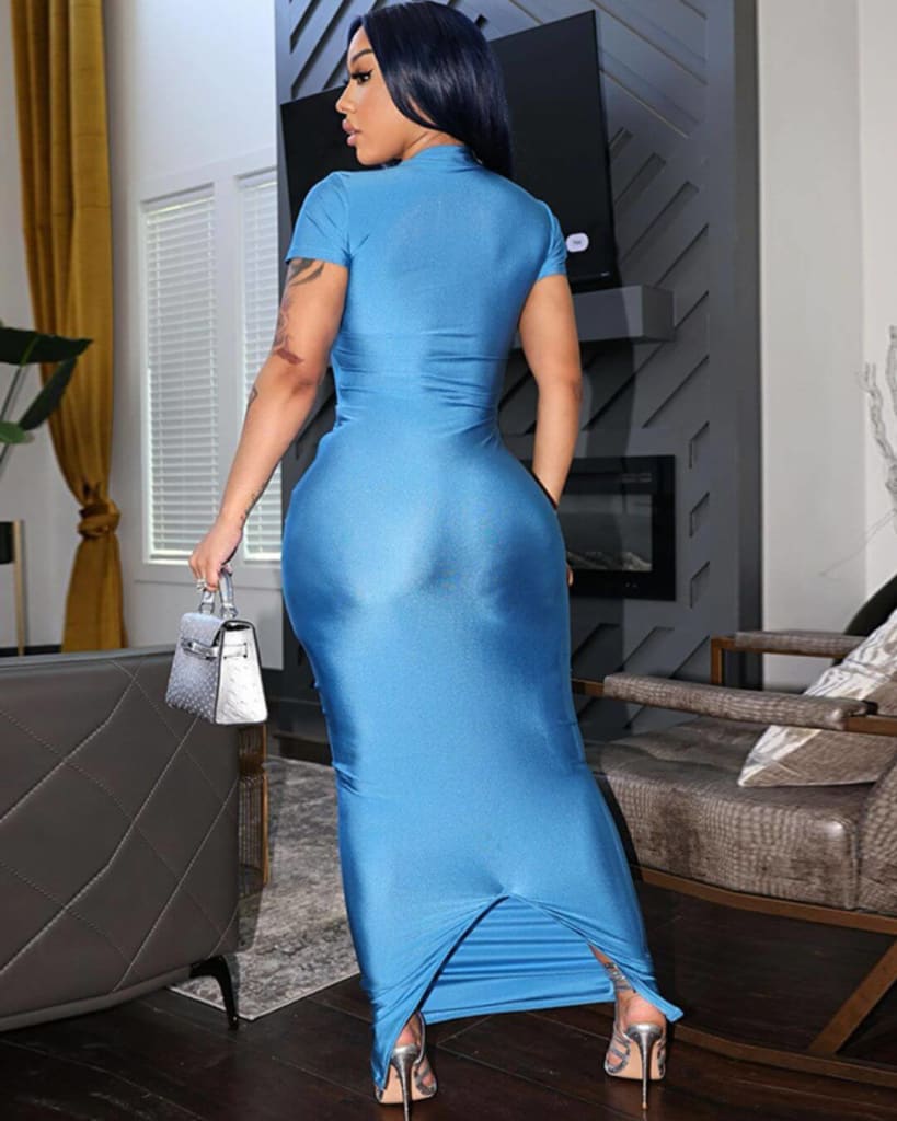 Our dress is a versatile piece that can be dressed up or down to fit any occasion. Whether it’s a fun day out with the girls or a night out on the town, our Short Sleeve Solid Bodycon O-Neck Midi Dress is guaranteed to make you feel and look like a star.