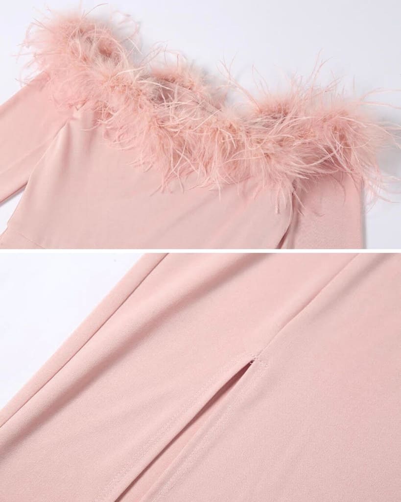 Make a wow-worthy statement in our elegant off shoulder side split pink body-con maxi dress. Perfect to wear to your next event.