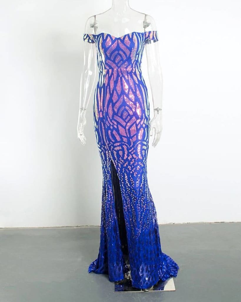 This chic and modern Off Shoulder Padded Geometric Stretch Sequin Dress is the perfect choice for an evening or night out. Featuring a split backless floor length full lining body-con design with off shoulder padded geometric stretch sequins, it’ll keep you comfortable and stylish all night long.