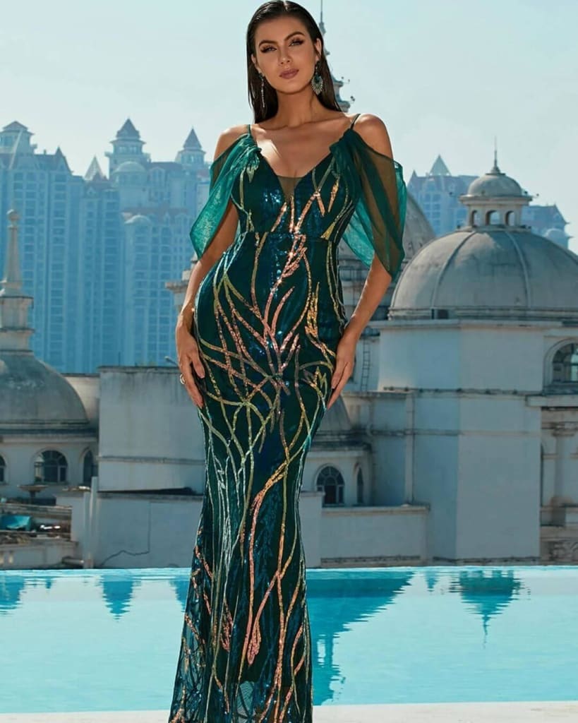 At STYLORD Boutique, our fashion philosophy isn’t just about wearing clothes. It’s about wearing confidence. It’s about wearing inspiration. And with the Off Shoulder V-Neck Mesh Sleeve Sequin Sexy Maxi Dress, it’s about wearing a masterpiece that reflects your unique style and unapologetic confidence. Ready to be unforgettable? Your transformation into a STYLORD Star starts here.