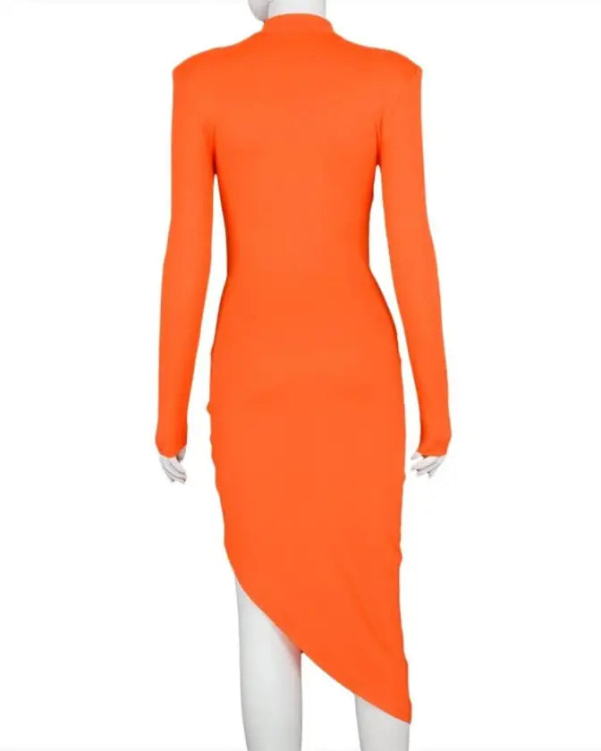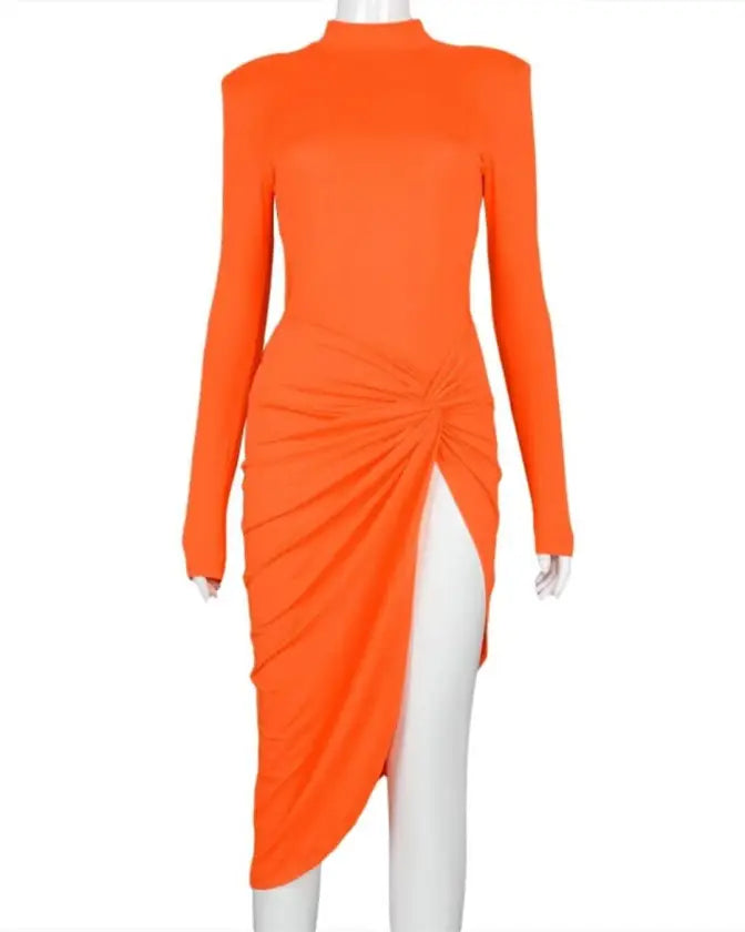 Dress to impress with our latest long sleeve turtleneck side high split dress for a glamorous look. Perfect for events and special occasions.