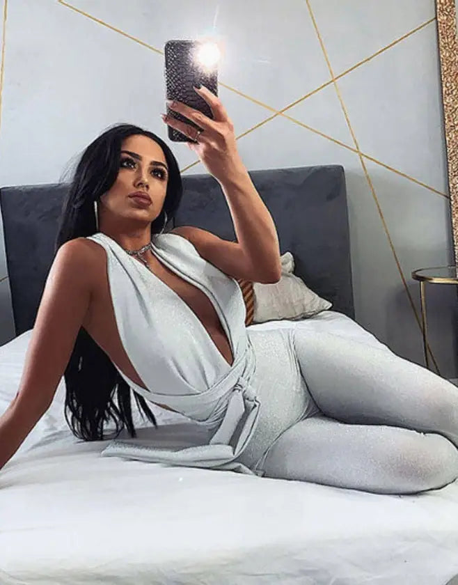 Got a big event to RSVP yes to? This silver shine sleeveless jumpsuit is ideal for any occasion!